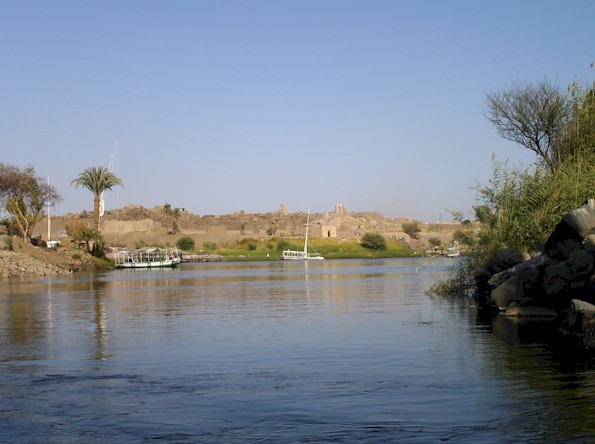 Davvero affascinante, ipnotico direi, il contrasto del deserto che domina a Occidente, su cui risaltano i profili delle Tombe dei Nobili e del Mausoleo dell’Aga Khan, dove egli stesso volle essere sepolto, alle cui spalle si trova il Monastero di San Simeone, uno degli edifici cristiani meglio conservati d’Egitto (anche se dà più l’idea di una fortezza che di un santuario religioso) col Nilo che qui ha un aspetto cristallino e cambia colore a seconda del momento della giornata.