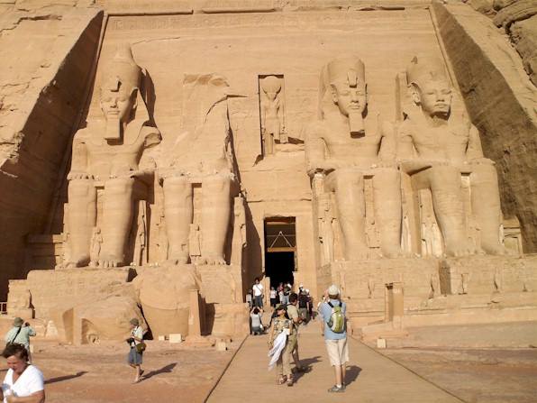 Sono rimasto senza parole mentre, circondata dal nulla, vedo per la prima volta Abu Simbel, affacciata come un gioiello rosso sul lago Nasser, creato dalla nuova diga di Aswan. E con estrema soggezione passo in mezzo alle quattro statue alte 20 metri del faraone Ramses II… In ammirato silenzio misuro coi passi l’immenso tempio interamente scolpito nella roccia rossa: statue, colonne, camere e ricettacoli compresi sono stati strappati a mano, scalpellata dopo scalpellata, fino a creare qualcosa di perfetto, e ancora intatto dopo migliaia d’anni. Incredibile! Inoltre, facendo mente locale che tutto è stato costruito 3200 anni fa, a 600 chilometri di deserto e diverse (tre?) cateratte nilotiche dall’allora capitale Tebe, perde quasi totalmente fascino il recente spostamento del tempio, trasformato (grazie a moderni macchinari e tecnologie) in un gigantesco Lego di oltre mille pezzi da 30 tonnellate ciascuno, e spostato a 210 metri di distanza e 65 metri più in alto dal corso del Nilo per sottrarlo dalle acque del più grande lago artificiale del mondo, che l’avrebbero altrimenti sommerso.