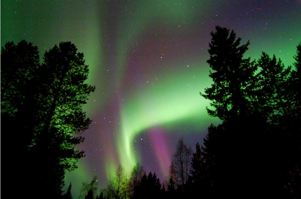 Deve essere stata la regolare visione di fenomeni come l’aurora boreale ad aver dato luogo alla nascita di tutti i miti sami. Nella notte, precoce alla fine del crepuscolo diurno, restiamo a guardare un po’ trasognati splendenti luci cangianti che drappeggiano il cielo con ampie onde sinuose. Mancano solo le note de “L’apprendista stregone”, e un Mickey Mouse in versione direttore d’orchestra a rendere idilliaco il quadro.
