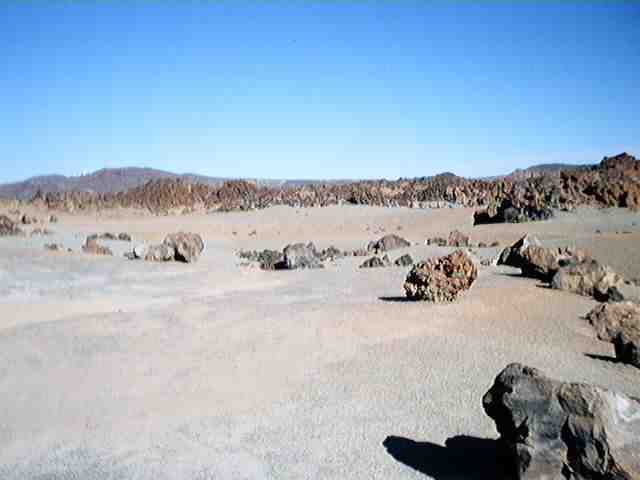 Ancora pochi chilometri di pendii tutto sommato dolci anche se strapiombano per 2000 metri, perdendosi tra le nuvole, pendii di colori spesso diversi che comprendono tutte le gradazioni del nero, del rosso e del giallo, ed entro nel parco nazionale de Las Canadas, ex cratere vulcanico di 75 chilometri di perimetro che circonda il Teide a est alla quota di 2000 metri.