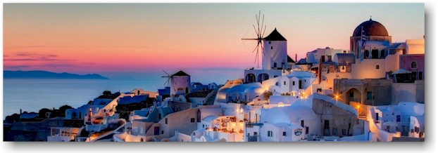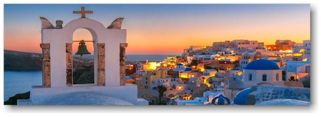 Santorini – Thira per i suoi abitanti – come tutte le Cicladi della Grecia baciata da un tempo ottimo da aprile fin quasi a tutto novembre, è quel che rimane di un vulcano per il resto sprofondato nel mar Egeo in occasione del terremoto del 225 aC. E si vede! Santorini è una grande mezzaluna con alte falesie scure nella sua parte concava (la caldera vera e propria) dominate dai paesi di Oia, Fira e Imerovigli, che sul lato opposto digrada dolcemente fino alle belle spiagge di sabbia lavica nera di Kamari, Perissa e Akrotiri.