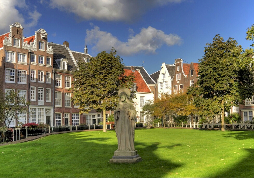 Da questa piazza si diparte la Kalverstraat, una lunga isola pedonale molto commerciale, che però nasconde il gioiello di Bejinhof, un quartiere del XIV secolo ancora intatto, un angolo di pace, verde, fiori e casette (tra cui quella più vecchia di Amsterdam, tutta in legno) tuttora abitate. Gran parte di Bejinhof rimane transennata per impedire il passaggio ai non residenti. A fianco si trova il mercato dei fiori Singel, dove – se la stagione lo permette – vi perderete tra barconi galleggianti che espongono ogni sfumatura e varietà del tulipano simbolo dell’Olanda.