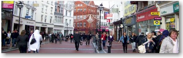 Attraverso invisibile i quartieri dello shopping e degli affari di Grafton Street (dove si apprende perché i dublinesi accostino alla cavolo capi di abbigliamento, tessuti e colori: copiano quel che vedono nelle vetrine, anche quelle dei brand italiani più trendy) che va ad incrociare la lunga e O’Connel Street a 4 corsie, nel cui mezzo avveniristici bici-taxi attendono passeggeri di sicuro facoltosi.